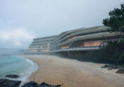 The hotel’s architecture is defined by the contours of the site’s Ryukyu Limestone formations and the surrounding forest. Composed of Pleistocene coral reef sedimentary layers initially deposited 400,000 years ago, this unique geology and its humid microclimate cultivate a dense subtropical rainforest along the coast. Led by stringent requirements and guidelines established by the island’s forestry commission and marine conservationists in addition to the local environmental authorities, ZHA’s design ‘floats’ above the landscape at the narrow boundary between the forest and beach to significantly reduce its footprint within these two natural ecosystems and maintain the site’s biodiversity.